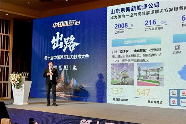 山东京博新能源控股发展有限公司特种燃料融创事业部总经理徐林勋,作了《基于油机协同的混动燃料设计与开发》报告,介绍了京博新能源特种燃油,在更好适应新能源汽车动力工况需求方面进行的开发工作,以及如何满足车企在研发测试、市场适配中对燃油的需求,助力主机厂实现更高性能和更低油耗目标。