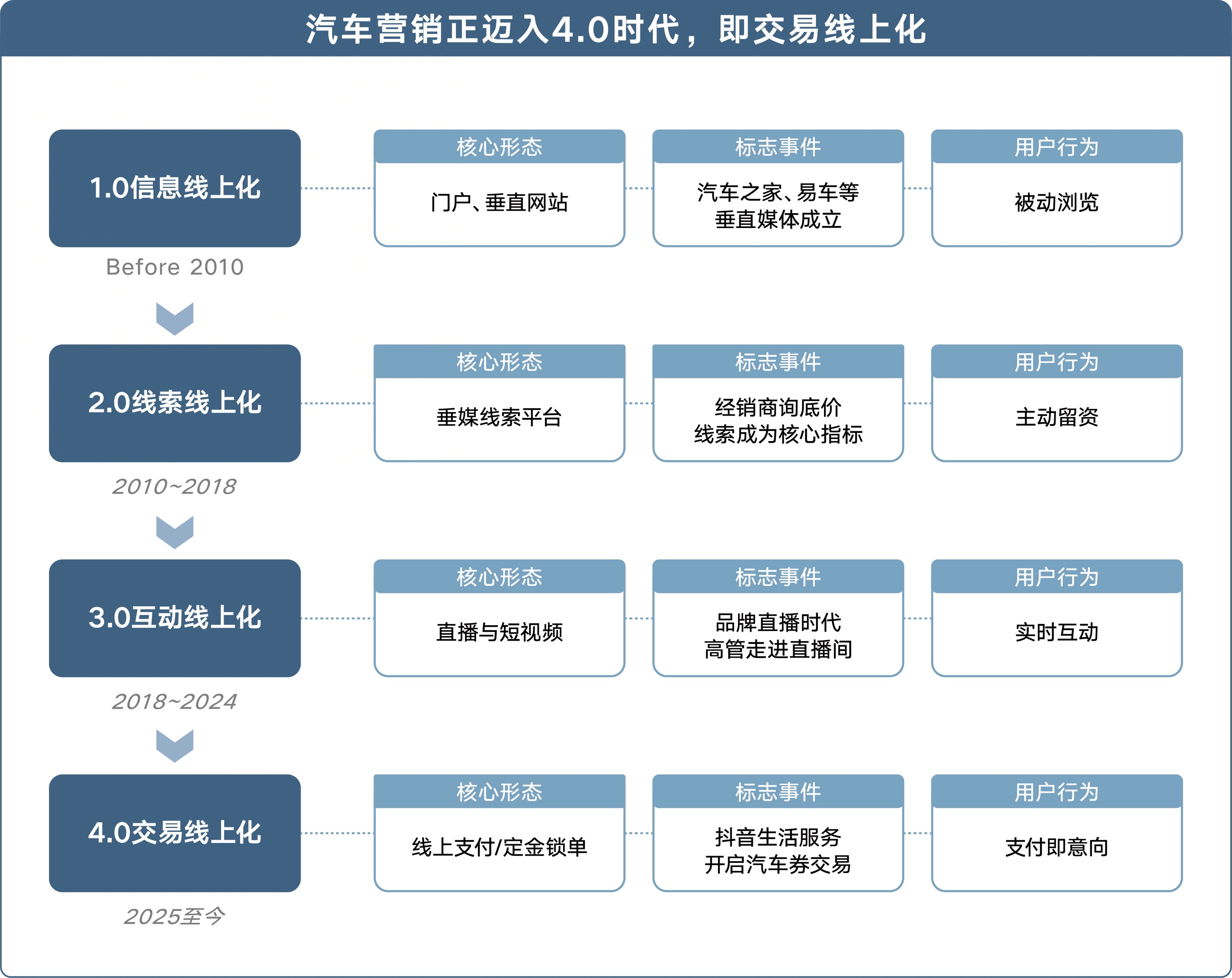 回顾汽车营销的数字化进程,大致可划分为四个阶段。