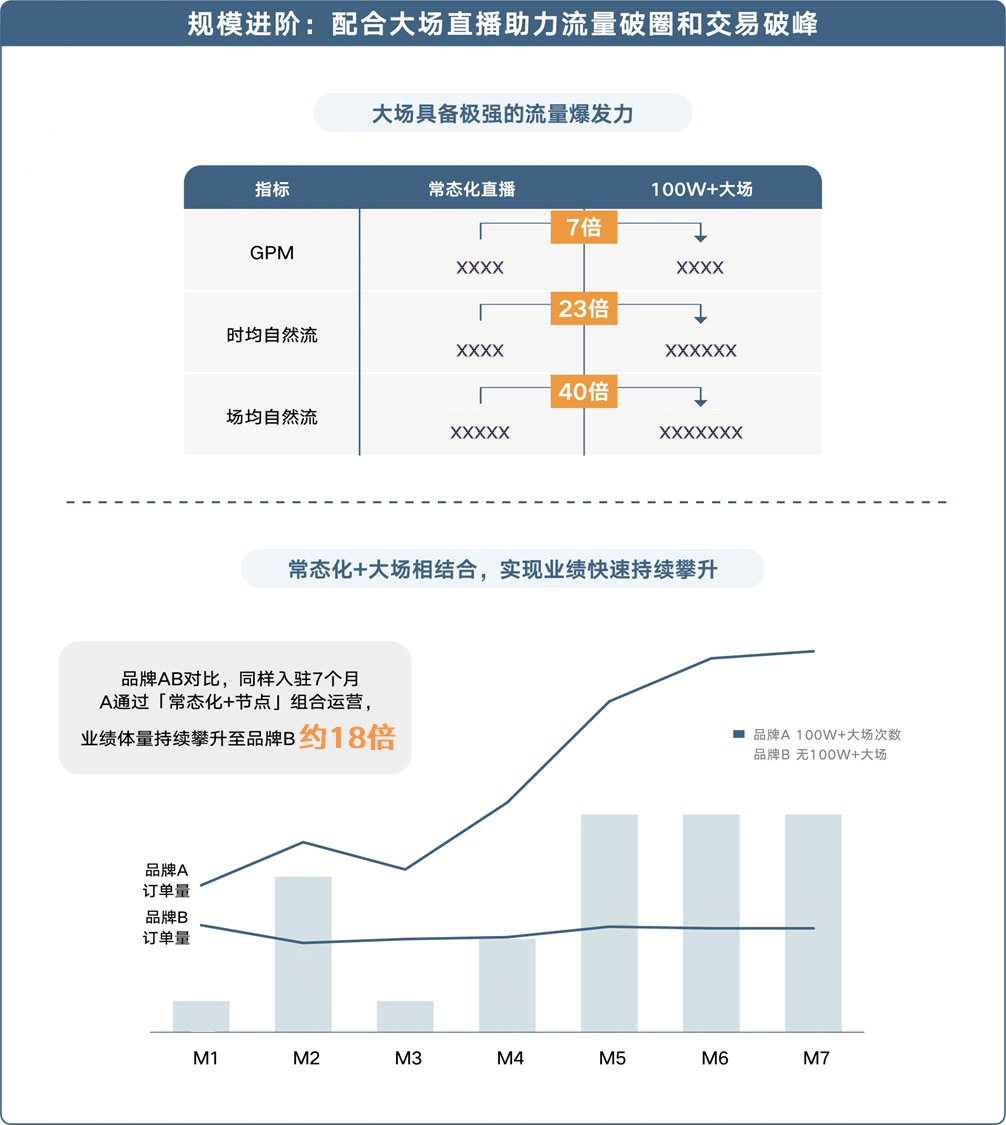 如果说常态化直播是“守正”,那么大场就是“出奇”。大场直播的流量爆发力惊人,除了能卖更多货之外,更重要的是能 “让更多人知道这个品牌在卖货” 。一次成功的大场,相当于一次集中的品牌曝光事件,能够将品牌交易心智植入到更广泛的用户群体中。
